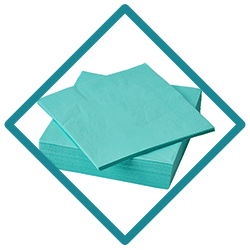 A napkin is a square of cloth or paper tissue used at the table for wiping the mouth and fingers while eating. It is usually small and folded, sometimes in intricate designs and shapes.